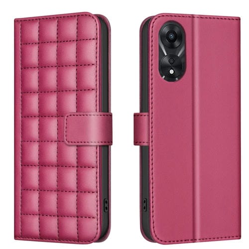 Para Oppo A78 5G Funda de Cuero con Textura Cuadrada (Rojo)