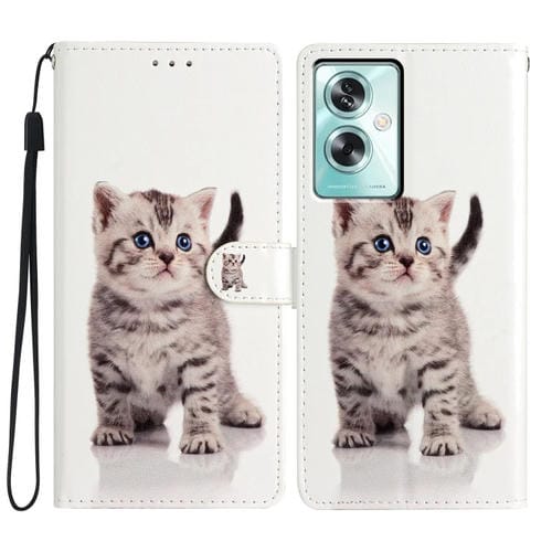 Para Oppo A79 5G / A2 5G Funda de Cuero para Teléfono con Dibujo Coloreado (Pequeño Gato Atigrado)