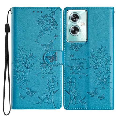 Para Oppo A79 / A2 5G Funda para Teléfono de Cuero con Relieve de Flor de Amor y Mariposa (Azul)