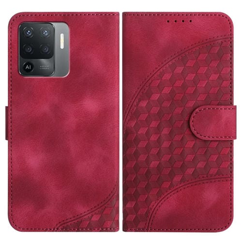 Para Oppo A94 4G/F19 Pro 4G/Reno5 F 4G/Reno5 Lite Yx0060 Funda de Cuero para Teléfono con Relieve y Cabeza de Elefante con Cordón (Rojo Rosa)