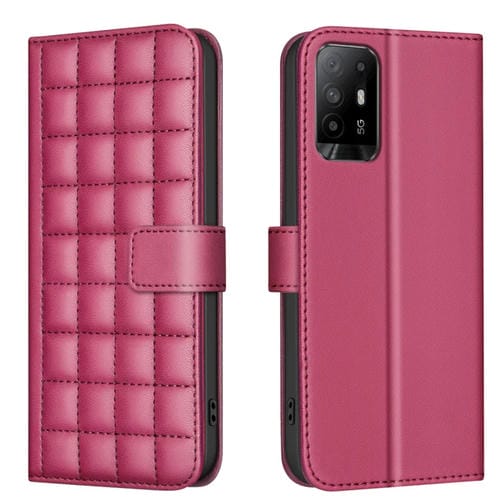Para Oppo A94 5G / Reno5 Z / F19 Pro+ Funda de Cuero para Teléfono con Textura Cuadrada (Rojo)