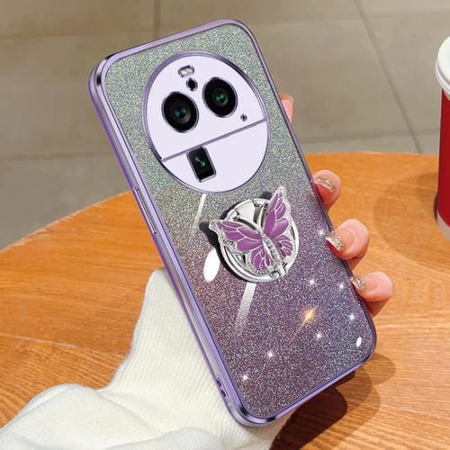 Para Oppo Find X6 Pro Funda para Teléfono de TPU con Soporte de Mariposa con Brillo Degradado Plateado (Púrpura)