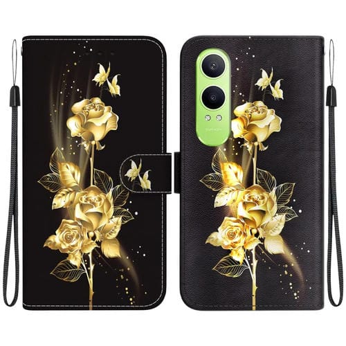 Para Oppo K12X Funda de Teléfono de Cuero con Dibujo Coloreado con Textura de Cristal (Mariposa Dorada Rosa)