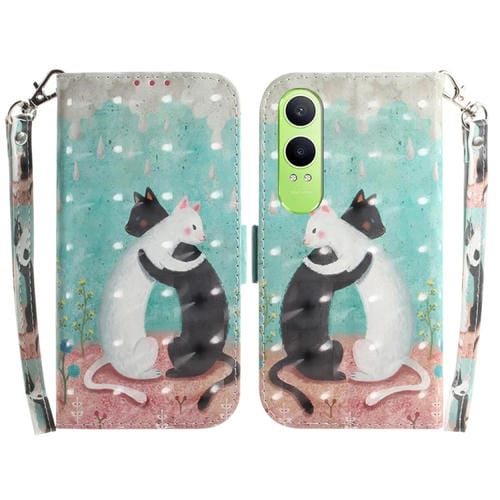 Para Oppo K12X Funda de Teléfono de Cuero con Tapa Horizontal de Color 3D (Gato Blanco Negro)