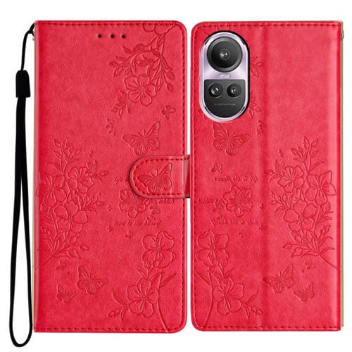 Para Oppo Reno10 / Reno10 Pro Butterfly Love Flower Funda de Cuero para Teléfono En Relieve (Rojo)