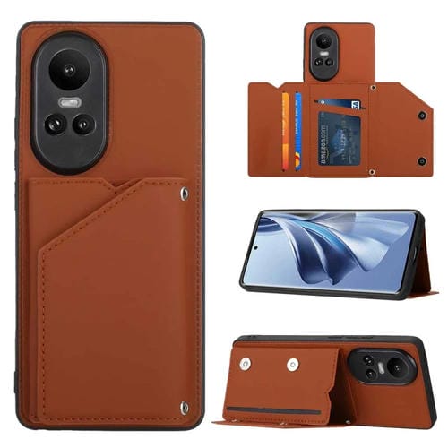 Para Oppo Reno10 / Reno10 Pro Global Skin Feel Pu + TPU + Funda para Teléfono con Ranuras para Tarjetas de PC (Marrón)