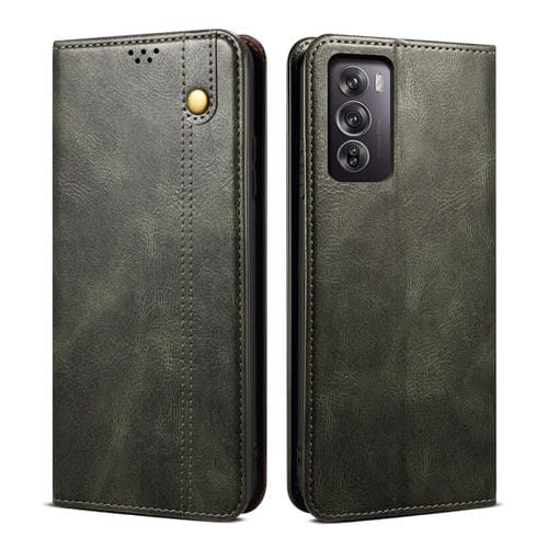 Para Oppo Reno12 Pro 5G Global Oil Wax Crazy Horse Texture Funda de Cuero para Teléfono (Verde Oscuro)
