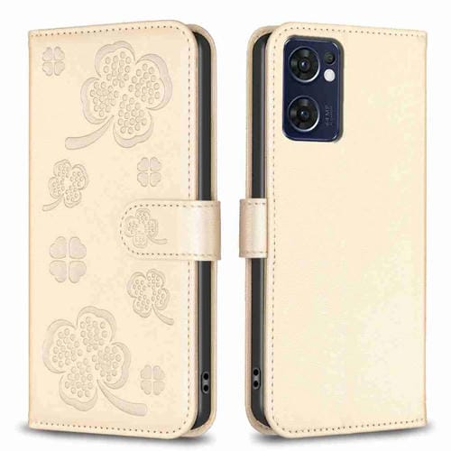 Para Oppo Reno7 5G / Find X5 Lite Funda de Cuero con Relieve de Cuatro Hojas para Teléfono (Dorado)