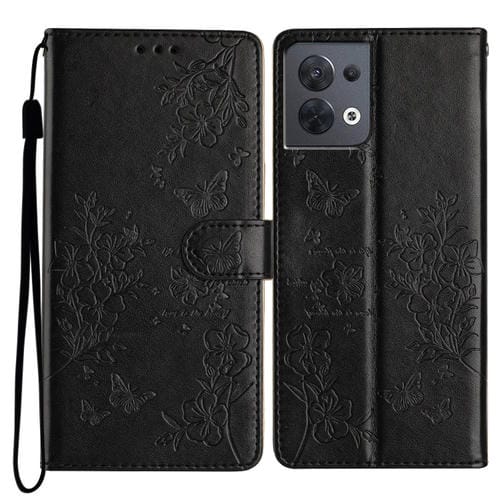 Para Oppo Reno8 5G Global Butterfly Love Flower Funda de Cuero para Teléfono En Relieve (Negro)