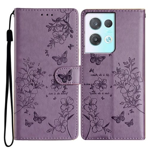 Para Oppo Reno8 Pro 5G Global Butterfly Love Flower Funda de Cuero para Teléfono En Relieve (Púrpura)