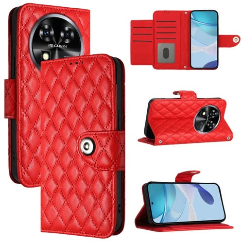 Funda para Oukitel C37 de Cuero con Tapa Textura Rómbica y Cordón (Rojo)