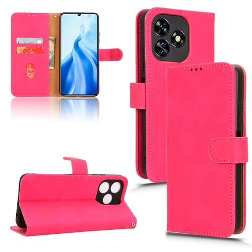 Funda de Cuero para Oukitel C51 con Tapa Magnética Skin Feel (Rojo Rosa)