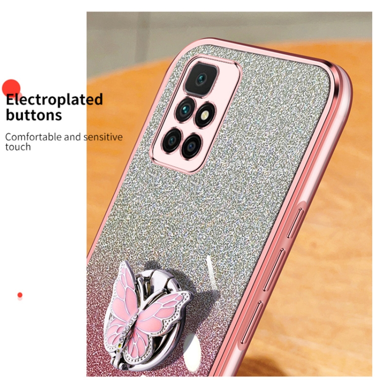 Para Redmi 10 Funda para Teléfono de TPU con Soporte de Mariposa con Brillo Degradado Plateado (Púrpura)