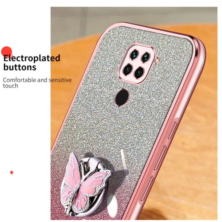Para Redmi 10X 4G Funda para Teléfono de TPU con Soporte de Mariposa con Brillo Degradado Plateado (Rosa)