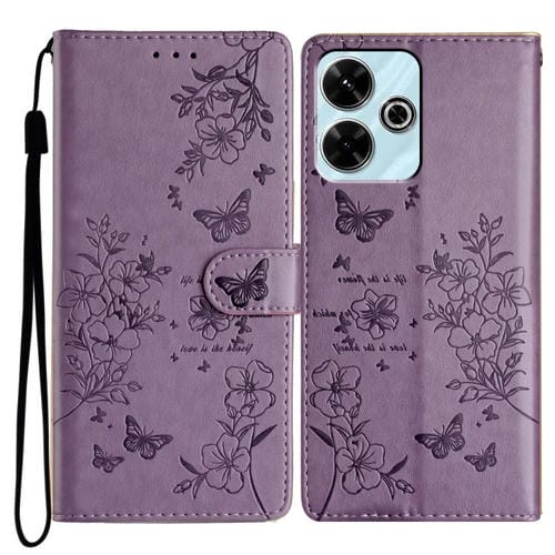 Para Redmi 13 4G Funda de Cuero para Teléfono con Mariposas y Flores (Púrpura)