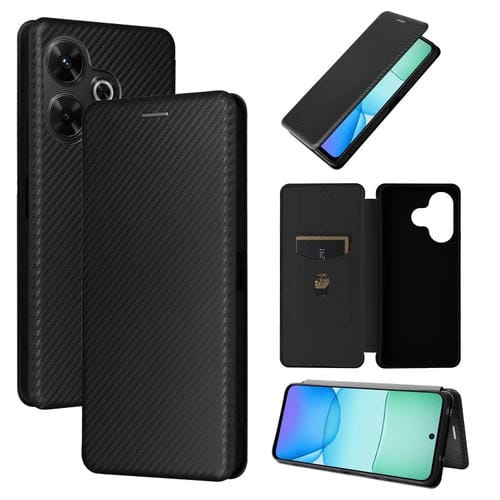 Para Redmi 13 4G Funda de Teléfono de Cuero con Tapa con Textura de Fibra de Carbono (Negro)