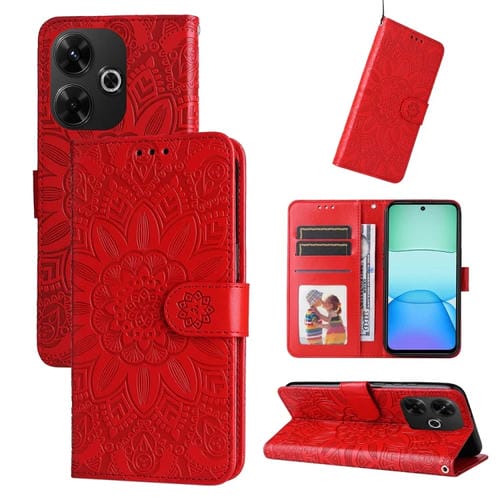 Para Redmi 13 4G / Redmi Note 13R Funda para Teléfono de Cuero con Girasol En Relieve (Rojo)