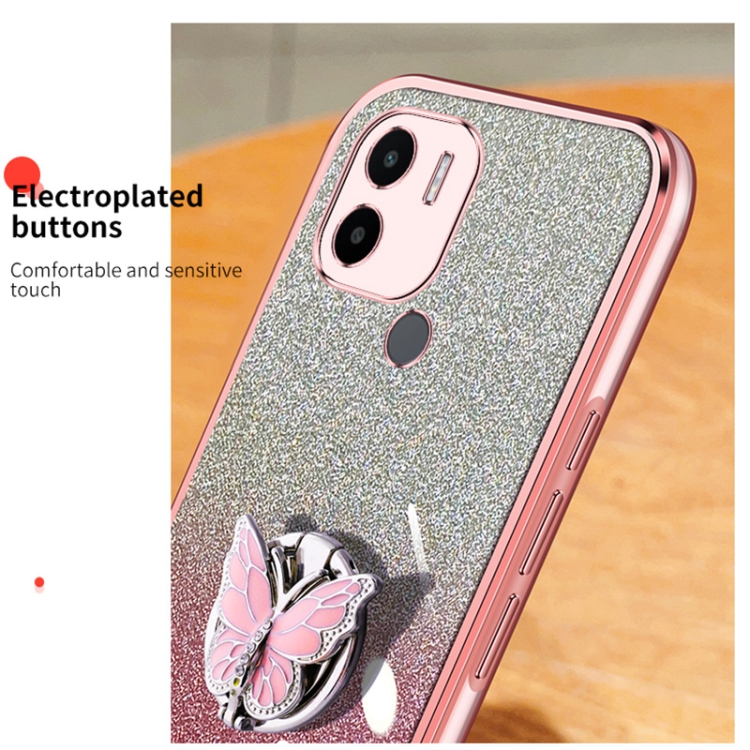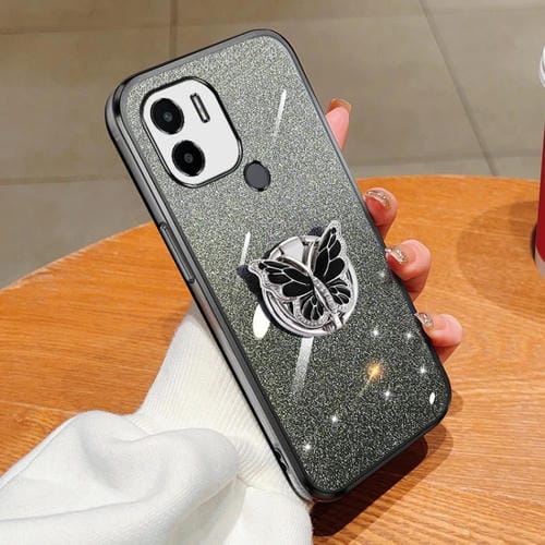 Para Redmi A1 + Funda para Teléfono de TPU con Soporte de Mariposa con Brillo Degradado Plateado (Negro)