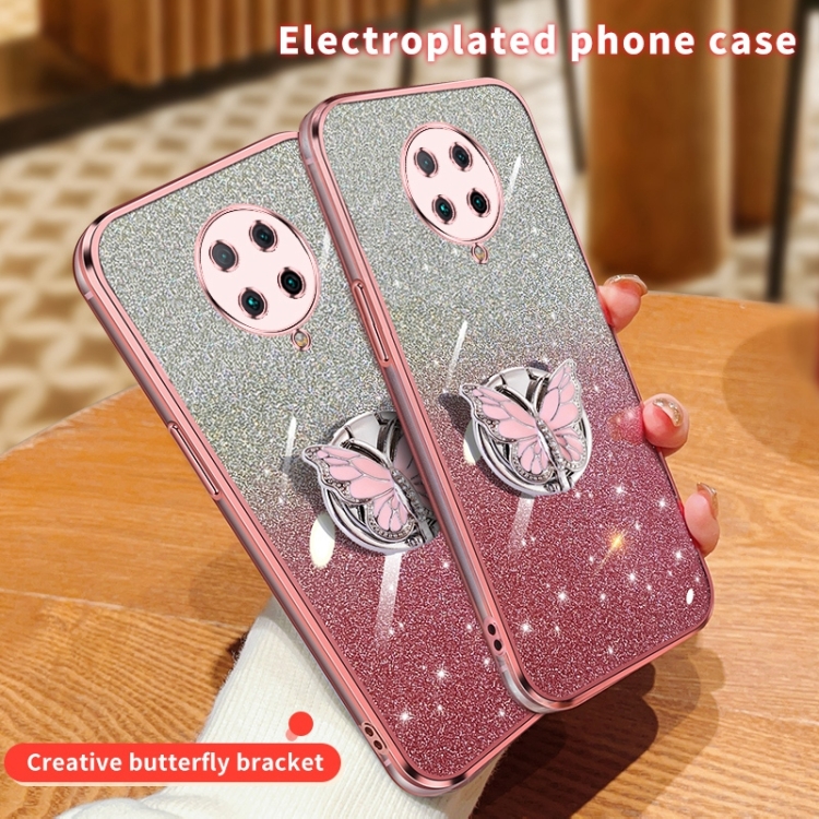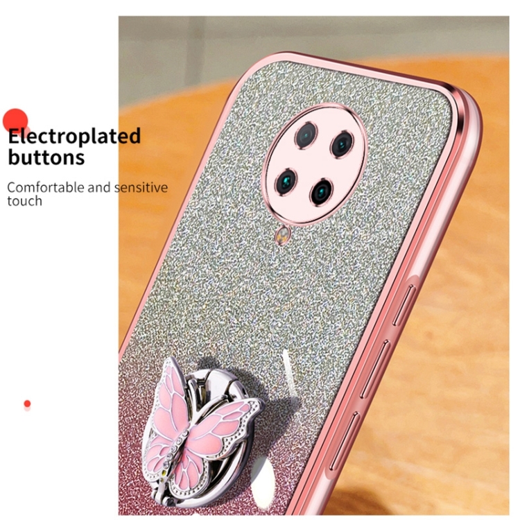 Para Redmi K30 Pro Funda para Teléfono de TPU con Soporte de Mariposa con Brillo Degradado Plateado (Plata)
