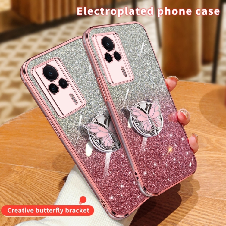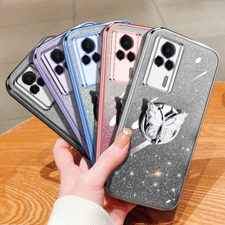 Para Redmi K60E Estuche para Teléfono de TPU con Soporte de Mariposa con Brillo Degradado Plateado (Negro)