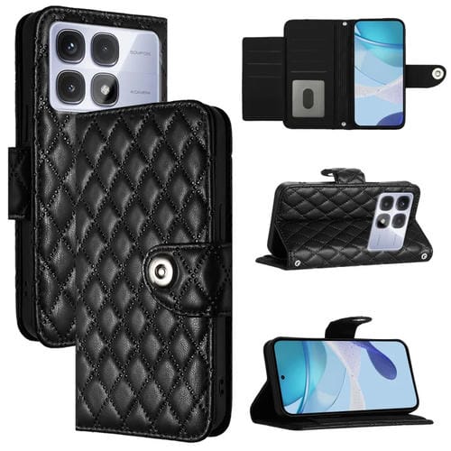 Para Redmi K70 Ultra 5G Funda para Teléfono con Tapa de Cuero con Textura Rómbica Global y Cordón (Negro)