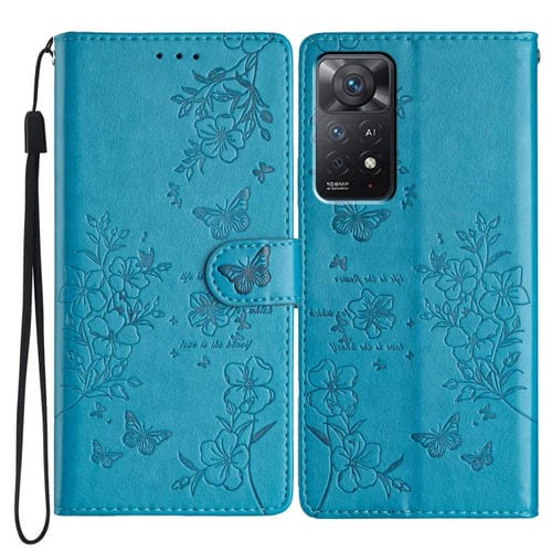 Para Redmi Note 11 Pro 5G Funda de Cuero para Teléfono con Mariposas y Flores Globales (Azul)