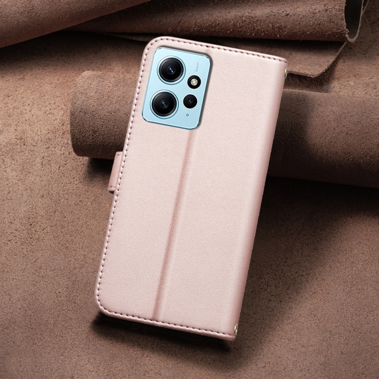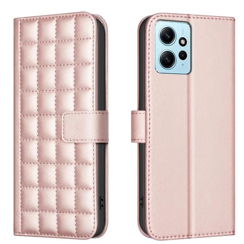 Para Redmi Note 12 4G Funda de Cuero para Teléfono con Textura Cuadrada Global (Oro Rosa)