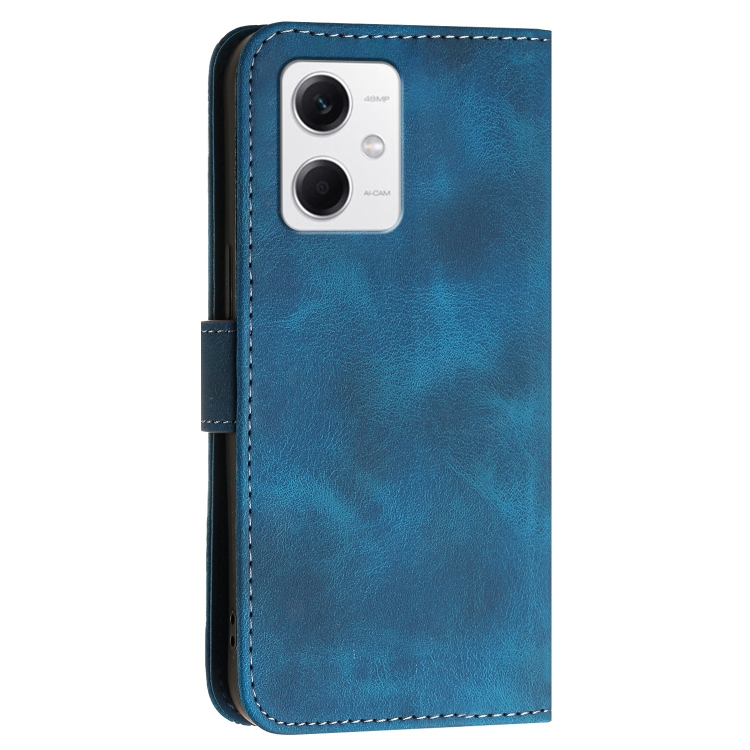 Para Redmi Note 12 5G Yx0080 Funda de Cuero con Tapa y Patrón En Relieve de Mariposa En Cuadrícula con Cordón (Azul Oscuro)