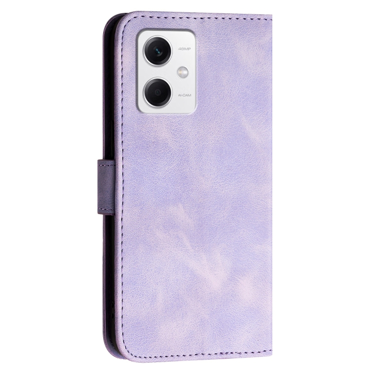 Para Redmi Note 12 5G Yx0080 Funda de Cuero con Tapa y Patrón En Relieve de Mariposa En Cuadrícula con Cordón (Morado Claro)