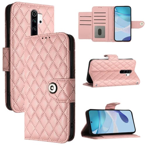 Para Redmi Note 8 Funda de Cuero con Tapa con Textura Rómbica y Cordón (Rosa Coral)