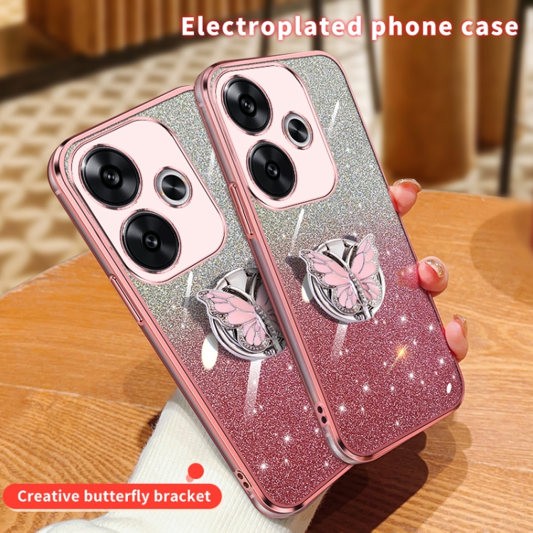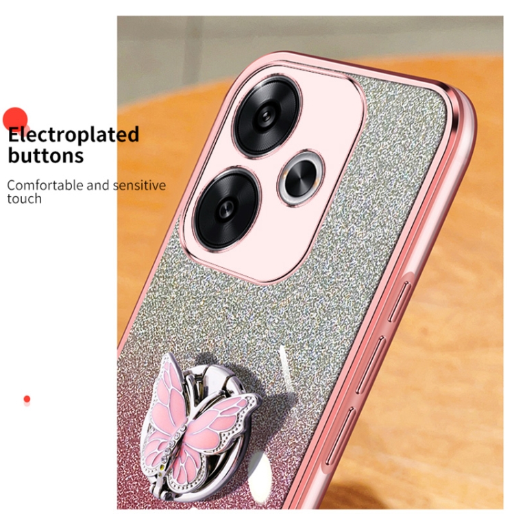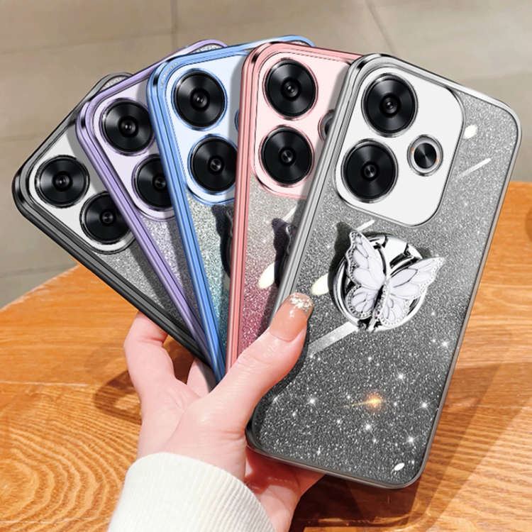 Para Redmi Turbo 3 Estuche para Teléfono de TPU con Soporte de Mariposa con Brillo Degradado Plateado (Negro)