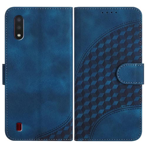 Funda de Cuero Samsung Galaxy A01 M01 Yx0060 con Relieve Cabeza de Elefante y Cordón (Azul Real)
