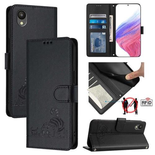 Estuche para Teléfono Samsung Galaxy A04 Core A03 Core 4G Cuero Rfid Patrón En Relieve y Cordón (Negro)