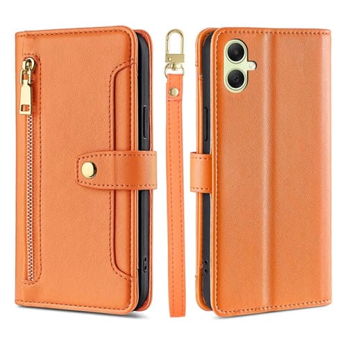 Funda para Samsung Galaxy A05 4G Lite Cuero con Billetera Cremallera Cuerpo Cruzado Textura de Oveja (Naranja)
