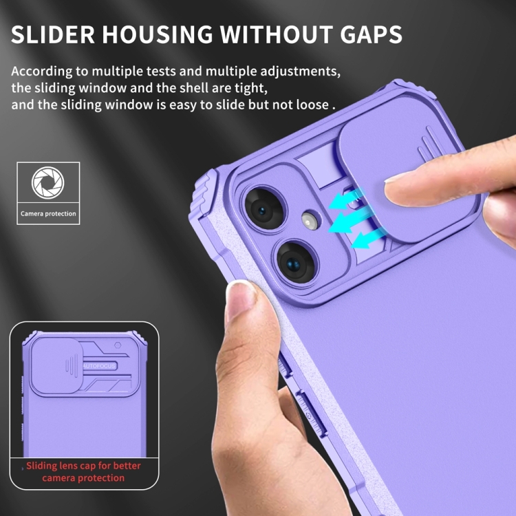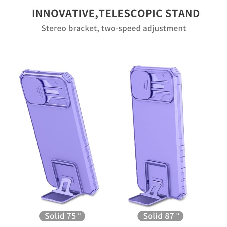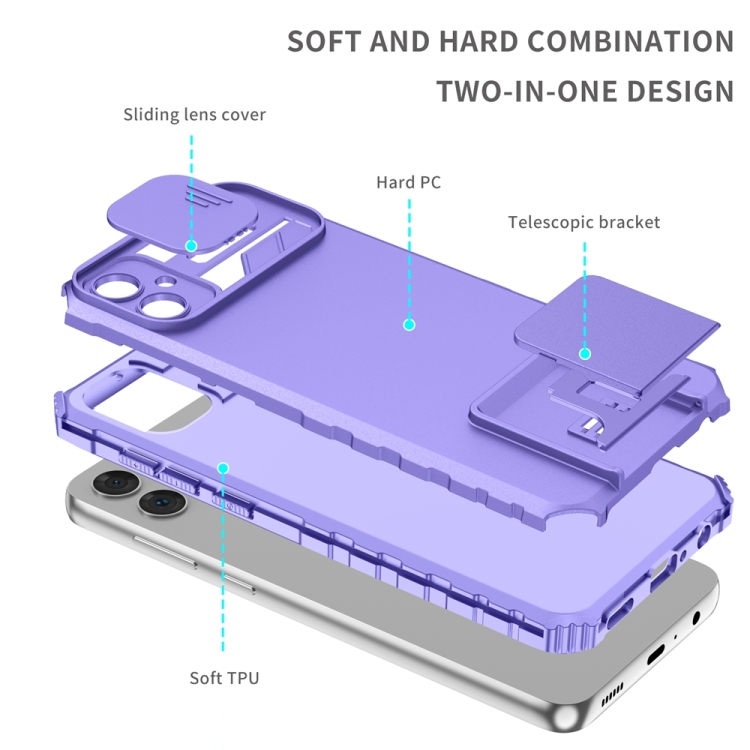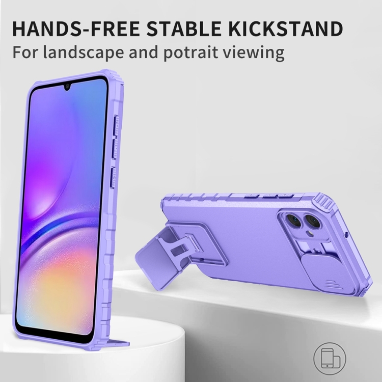 Funda para Teléfono Samsung Galaxy A05 con Soporte Estereoscópico y Escudo de Leva Deslizante (Púrpura)