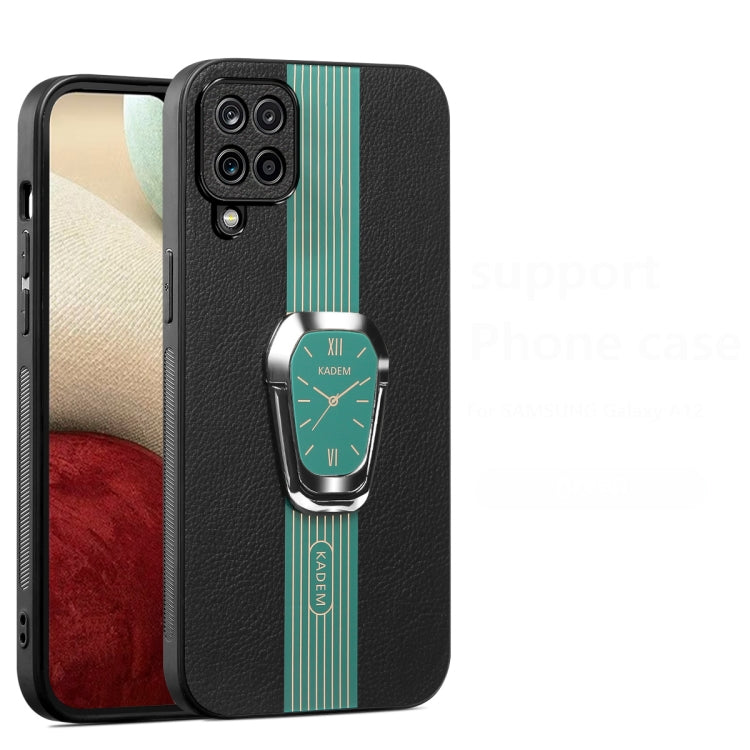 Estuche magnético para Samsung Galaxy A12 4G con parte trasera de cuero Litchi y soporte (Verde)
