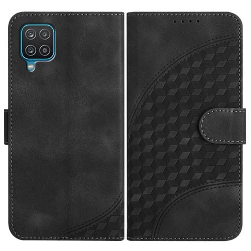 Funda para Samsung Galaxy A12 Yx0060 Cuero con Relieve y Cabeza de Elefante con Cordón (Negro)