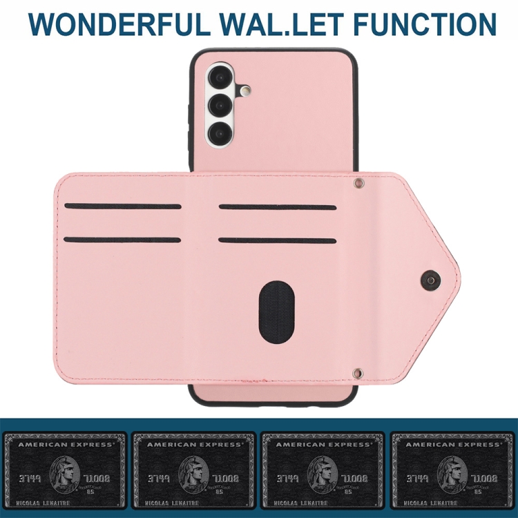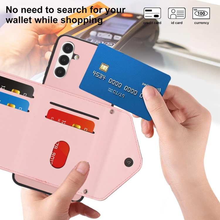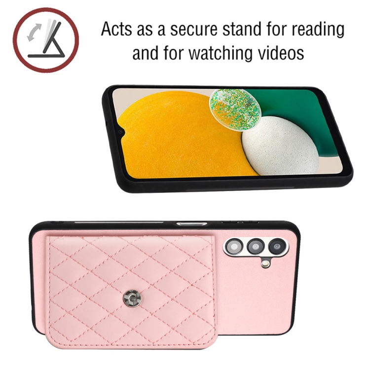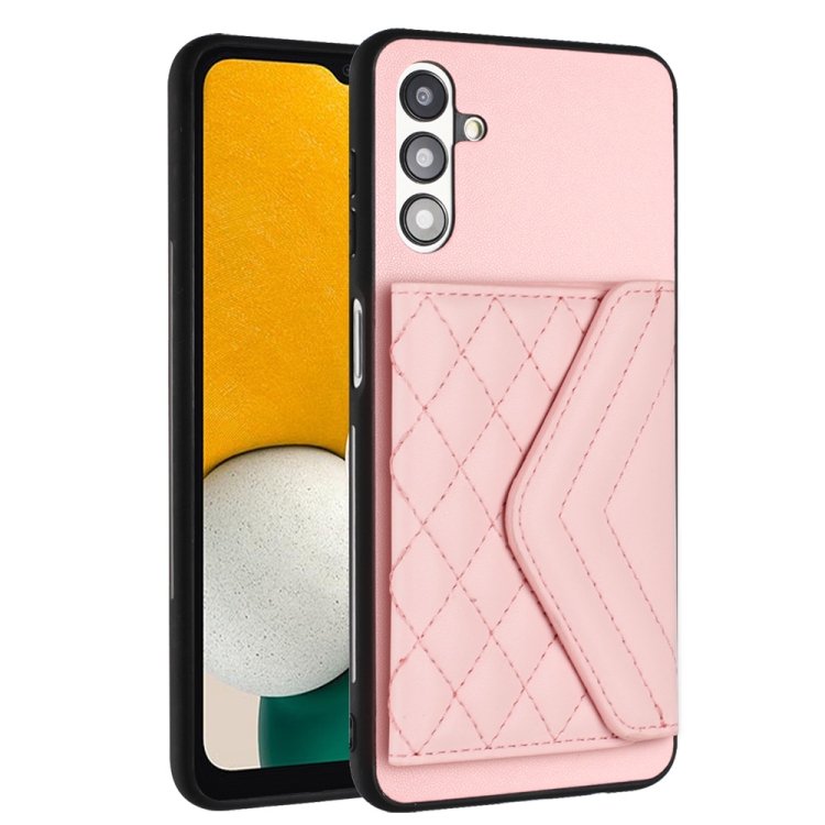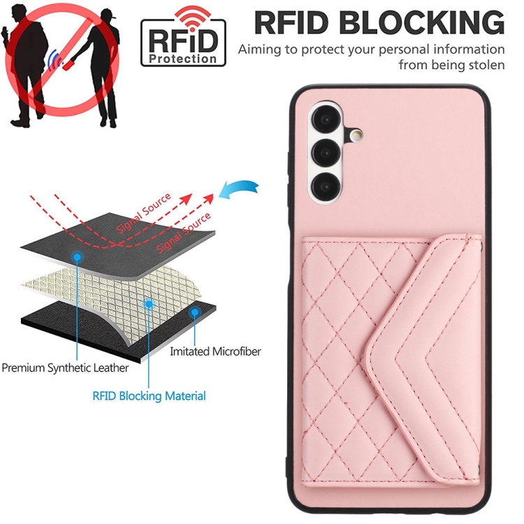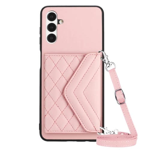 Funda para Teléfono Samsung Galaxy A13 5G / A04S Rfid con Bolsa para Tarjetas Textura Rómbica y Cordón Largo (Oro Rosa)