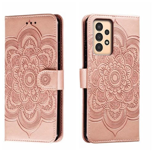 Funda de Cuero Samsung Galaxy A13 Sun Mandala con Patrón en Relieve (Oro Rosa)