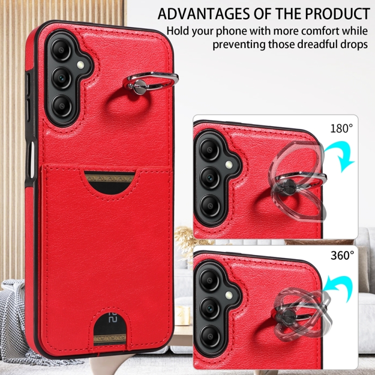 Funda para Samsung Galaxy A14 4G y 5G con Soporte para Anillo y Ranura para Tarjeta (Rojo)