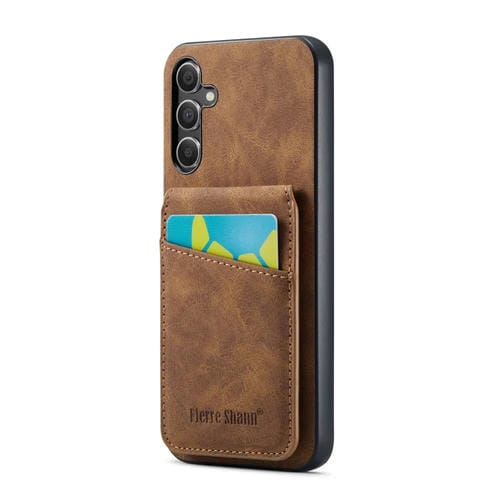 Funda para teléfono Samsung Galaxy A14 5G Fierre Shann Crazy Horse Titular de tarjeta contraportada PU (Marrón)