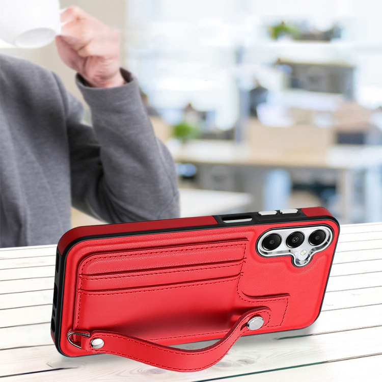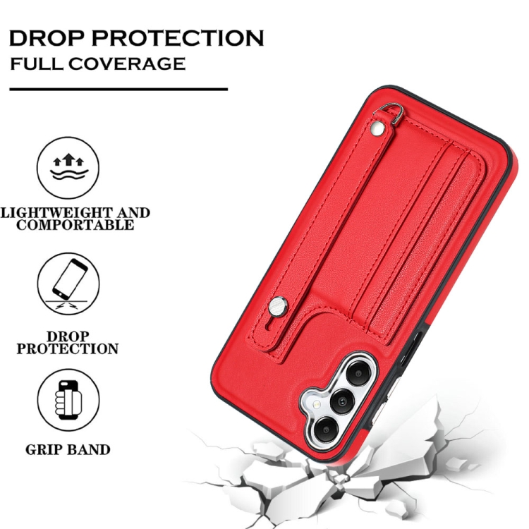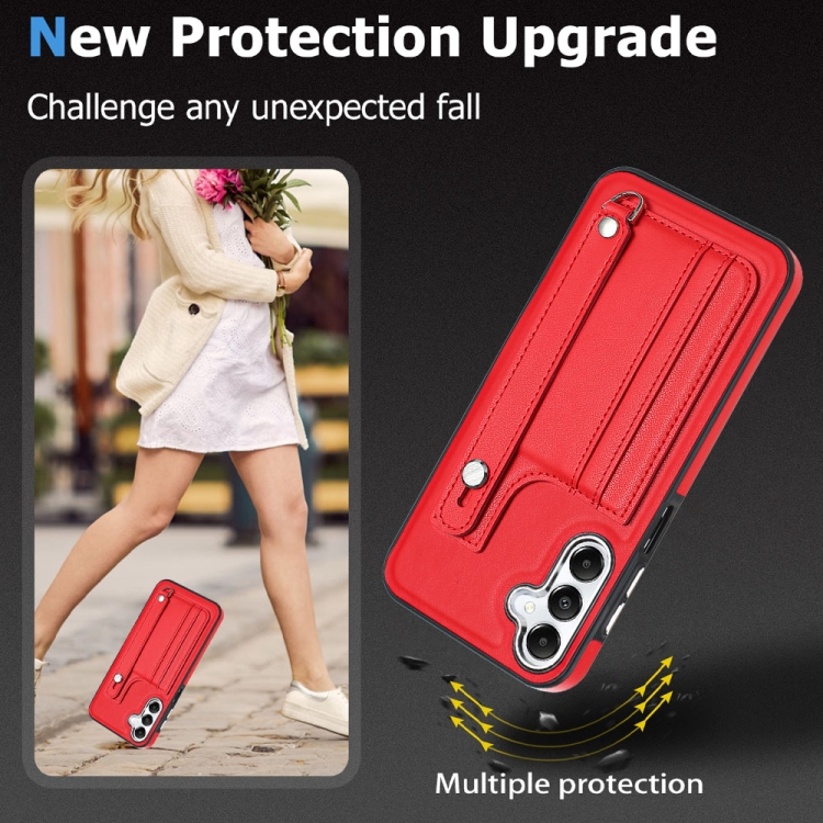 Funda para Teléfono Samsung Galaxy A15 Cuero a Prueba de Golpes con Correa para Muñeca (Rojo)