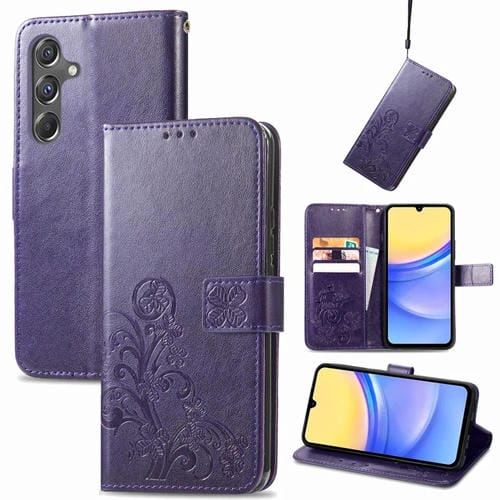 Funda para Teléfono Samsung Galaxy A15 Cuero Hebilla En Relieve Cierre de Cuatro Hojas (Púrpura)