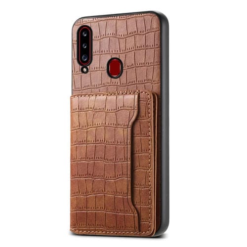 Estuche para Teléfono Samsung Galaxy A20S con Diseño Bolsa para Tarjetas Textura de Cocodrilo (Marrón)
