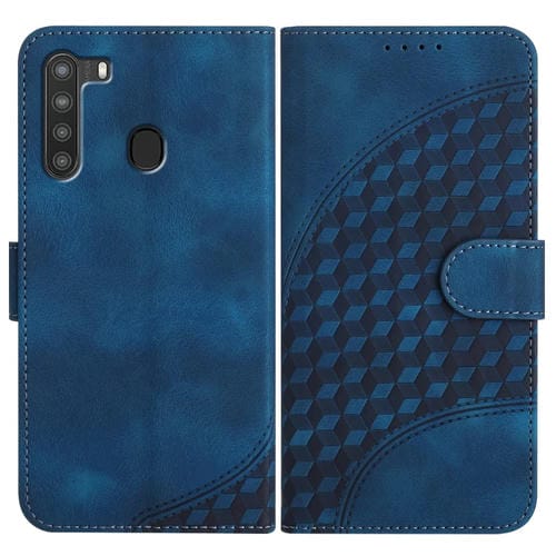 Funda para Samsung Galaxy A21 Versión UE Yx0060 Cuero con Relieve Cabeza de Elefante y Cordón (Azul Real)