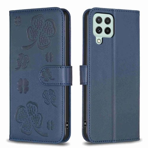 Funda de Cuero Samsung Galaxy A22 4G Relieve Cuatro Hojas (Azul)