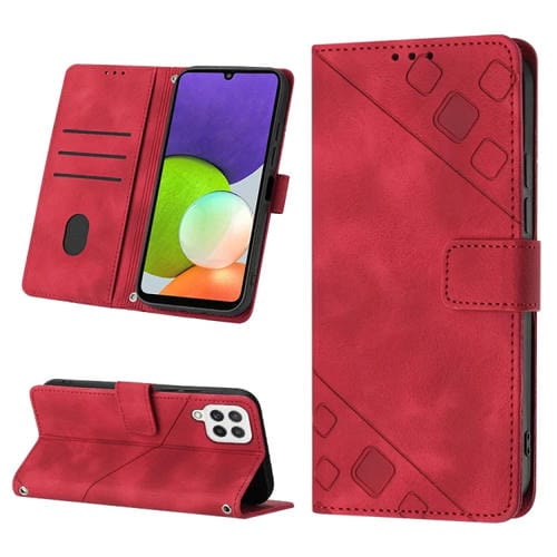Estuche para Teléfono Samsung Galaxy A22 4G M32 4G Cuero En Relieve con Tacto de Piel (Rojo)