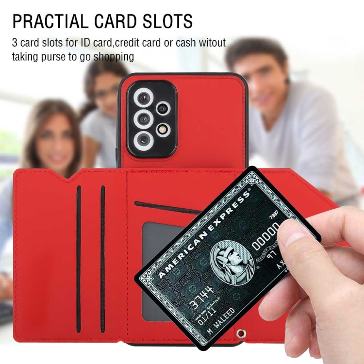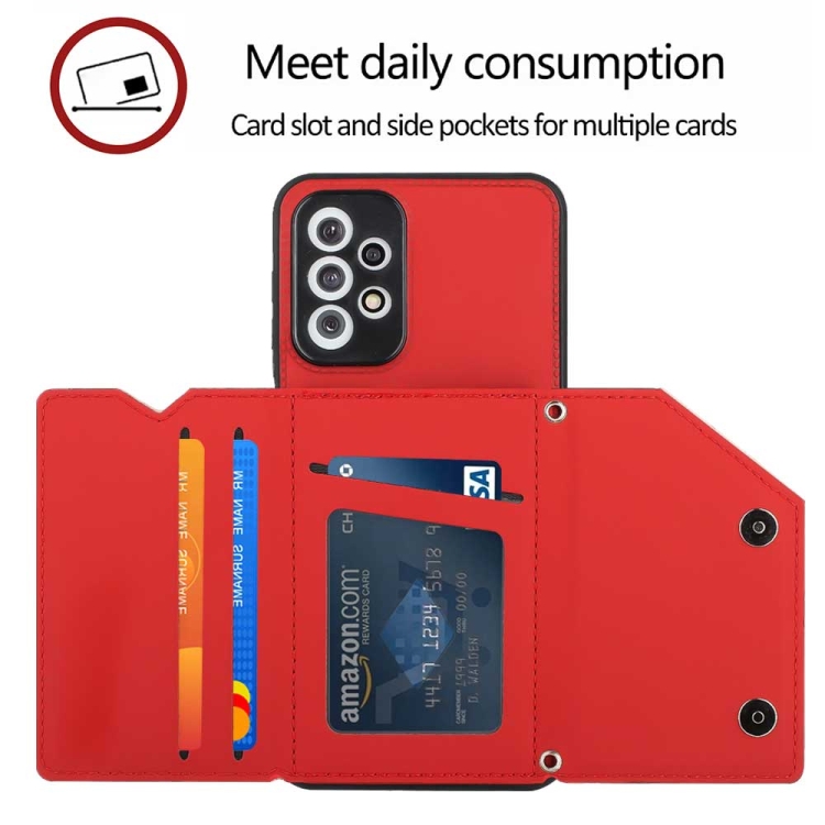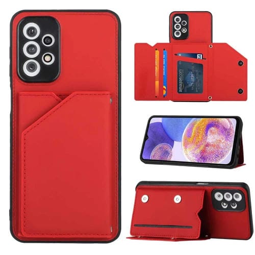 Funda para teléfono Samsung Galaxy A23 4G 5G Skin Feel PU TPU con ranuras para tarjetas PC (Rojo)