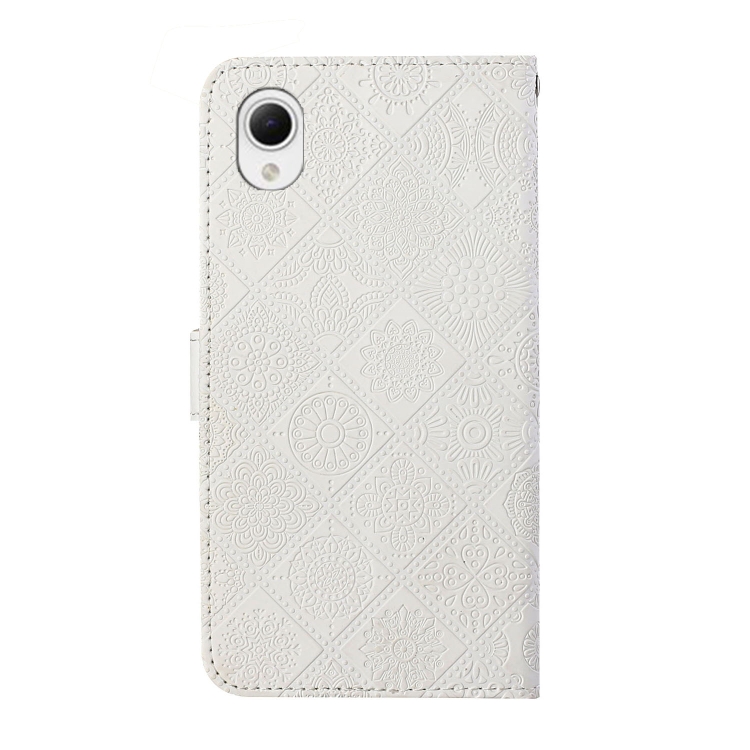 Estuche para Teléfono Samsung Galaxy A23E Cuero Patrón en Relieve Estilo Étnico (Blanco)