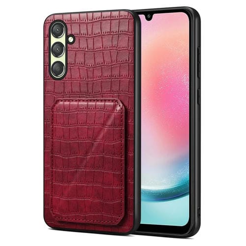 Funda Trasera Samsung Galaxy A24 4G Denior Piel Cocodrilo Imitación con Soporte (Rojo Rosa)